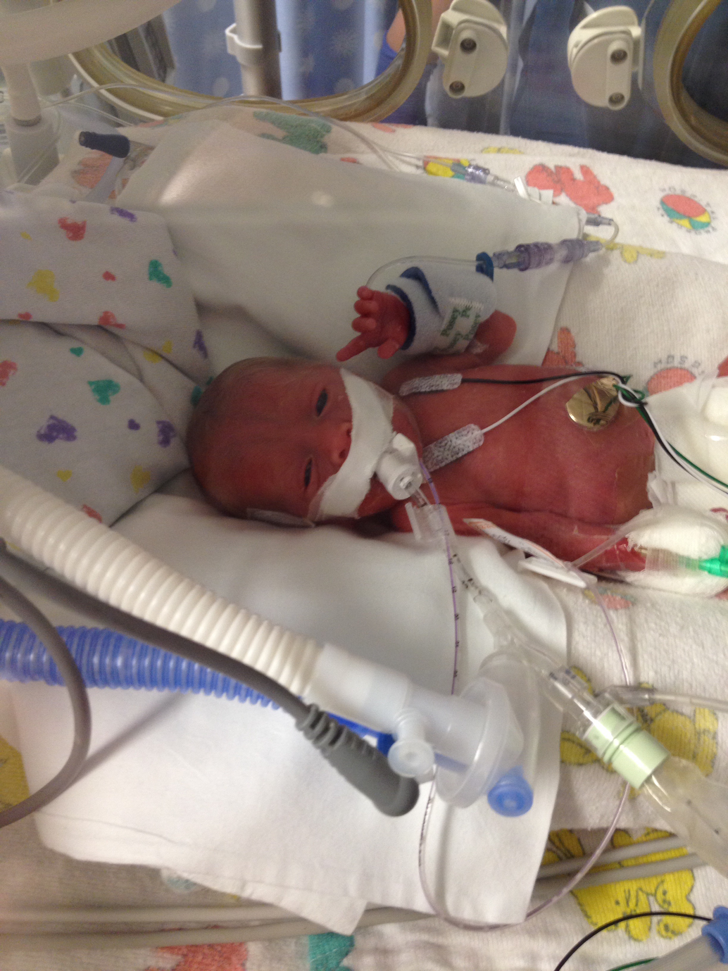 But more bad news… When they check his stomach contents before feeding they find it red, there is blood in his stomach. They wanted to up his feeding today but can’t because of gastritis. Thankfully the treatment for gastritis they are essentially already doing and continuing feeding milk, it should help his stomach lining heal.